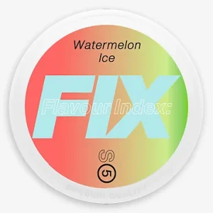 FIX Watermelon Ice (11,5 mg) liefert saftige Wassermelone mit einem kühlen, eisigen Abgang in tabakfreien Nikotinbeuteln und bietet eine sanfte, niedrige bis mittlere Stärke von 11,5 mg, diskreten Genuss für den ganzen Tag, minimales Nachtropfen und lang anhaltenden Geschmack – perfekt für Fans des erfrischenden FIX Snus.